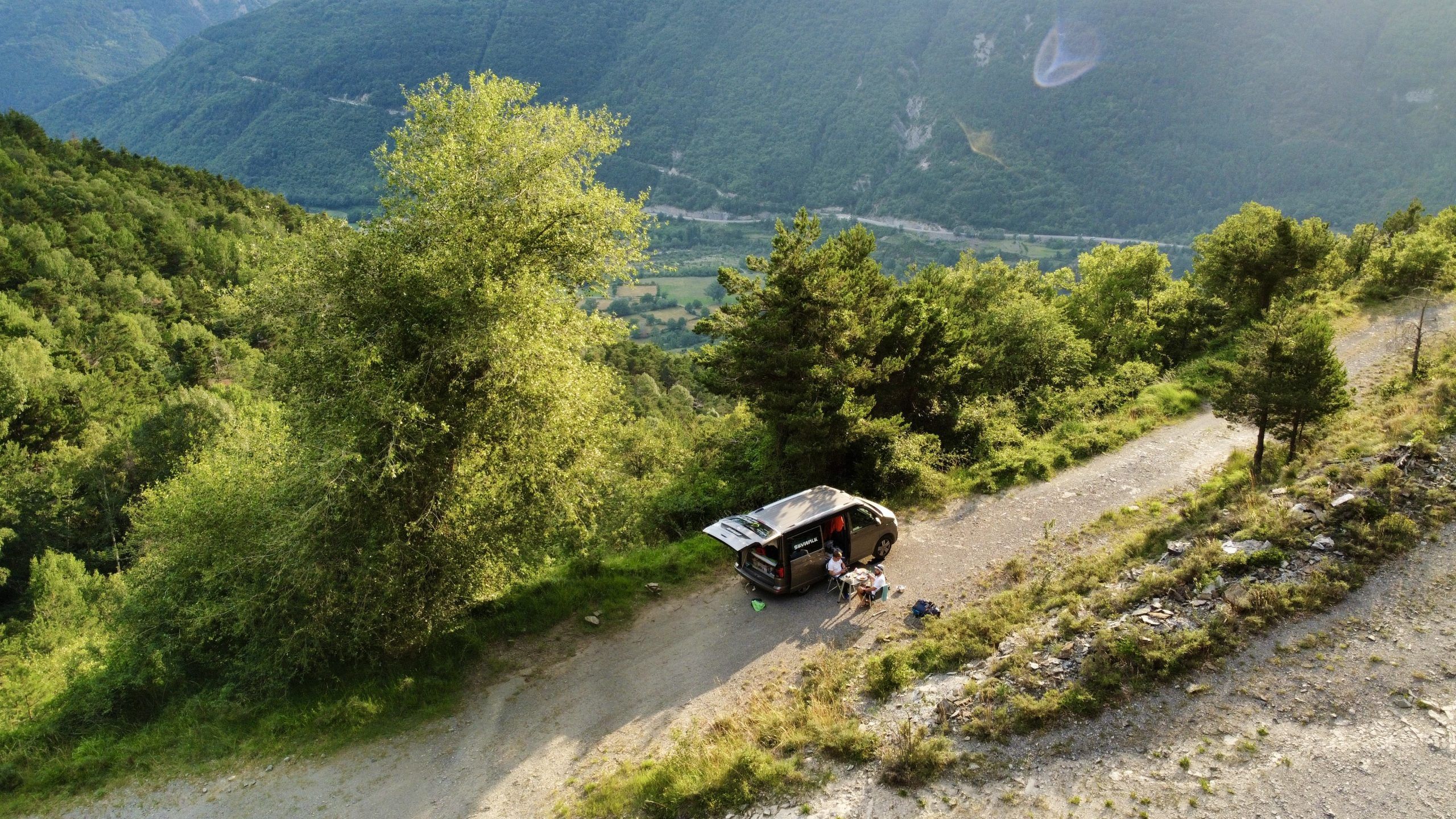 El cuarto día comenzó con una bonita excursión al Pico de las Tres Guegas. En el aire, las térmicas eran muy buenas, pero el viento del sur también era muy fuerte – demasiado fuerte para mí. Decidí que ya no es seguro volar y aterricé en «Sallent de Gallego», no es una buena posición para el progreso de la carrera pero es un lugar seguro para aterrizar. Bueno, esperamos que haya buen tiempo para volar 🤞.