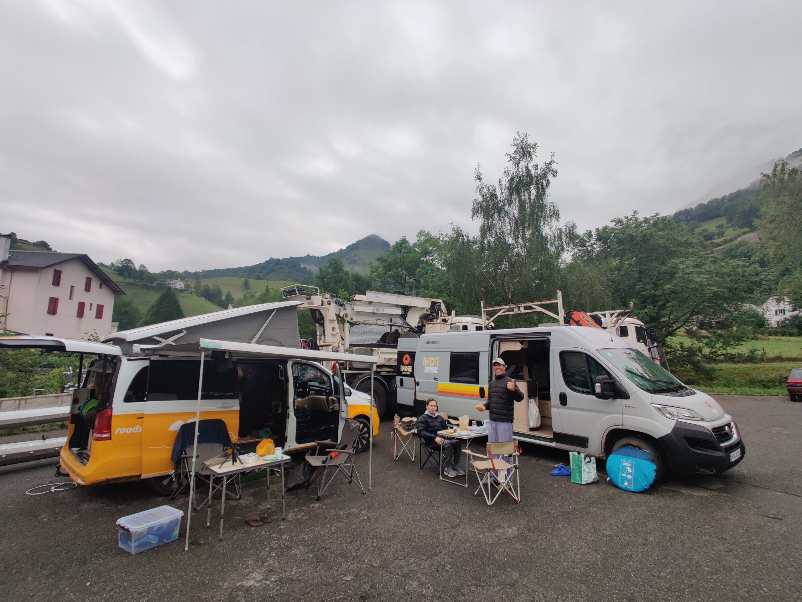 Primera cuestión: Tuvimos el tiempo justo para cruzar las montañas antes de la hora límite, las 21:00. Segundo problema: La niebla se acercaba tanto por el lado español como por el francés de las montañas. Tercer problema: Se preveían tormentas por la tarde. ¡No teníamos tiempo que perder! Descargamos los mapas y las rutas en el teléfono, empacamos la batería adicional, la comida, la ropa de abrigo y los chubasqueros, y nos pusimos en marcha.