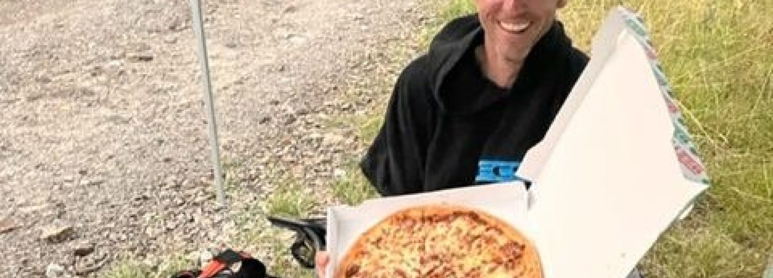 Dado que el parapente es un deporte que depende de las condiciones meteorológicas, los días cuatro y cinco de la X-Pyr estuvieron bastante centrados en la caminata. Rob se enfrentó a fuertes vientos en contra los dos días, lo que dificultó el vuelo, pero pudo cubrir una buena distancia en tierra. Fue conducido al campamento al final del cuarto día por una tormenta eléctrica con algunos rayos bastante espectaculares. Paramos cerca de Yesera, España, donde disfrutamos de una sabrosa pizza que nos entregó generosamente el amigo de Keith, Alex, un atleta local de la zona.