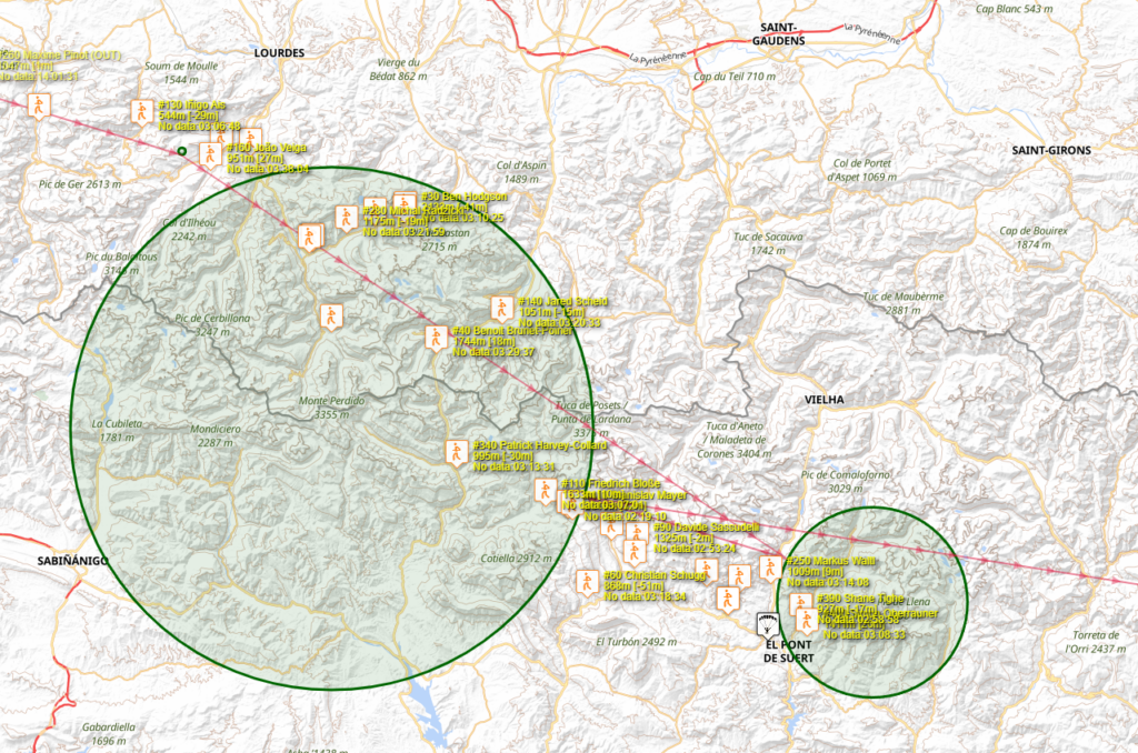 Por detrás, Simon Oberrauner y Pierre Rémy han volado muy rápido, y han aprovechado todas las caras sur que están antes de la baliza de Val d’Azun, para marcar la baliza en vuelo y prácticamente han atrapado a los que les preceden y se han juntado en Luz St Saveur.