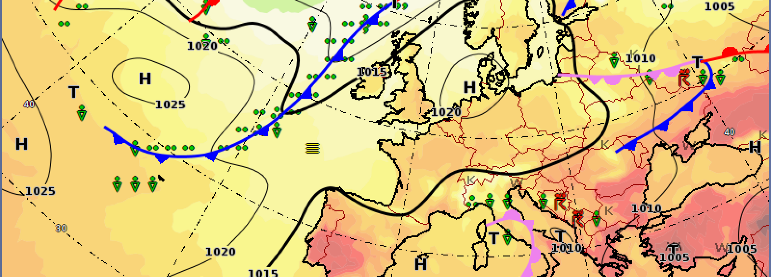 En superficie, el centro del sistema de altas presiones se desplaza hacia el noreste, provocando una disminución progresiva del MSLP sobre los Pirineos.Mientras tanto, en niveles superiores, se está formando una dorsal pronunciada sobre el Golfo de Vizcaya, mientras que la baja cortada sobre el Mediterráneo permanece estacionaria.La dirección del viento cambia de norte a este-noreste, manteniendo una componente norte en las capas más bajas.La humedad de hoy permanece bloqueada en las capas bajas entre las llanuras francesas y los Pirineos