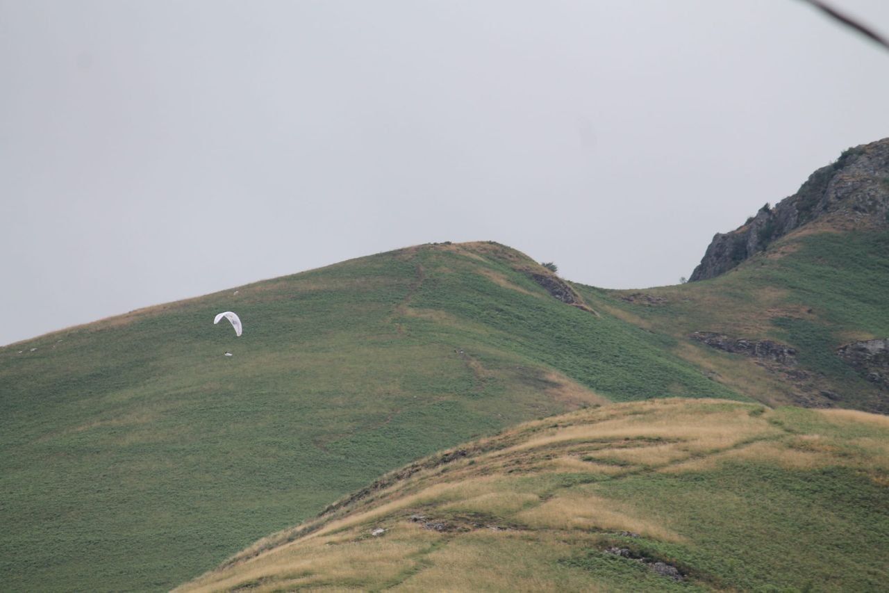 Esperábamos mucha lluvia el primer día, pero quedamos gratamente sorprendidos cuando ese pronóstico no se cumplió. Rob superó la carrera/caminata inicial de 14 millas hasta la cima de Larrun justo detrás del pequeño grupo de cabeza, por lo que estaba bien posicionado para su primer «sled ride» del día. A medida que avanzaba hacia el este, el campo se desvió en dos direcciones, una que seguía la línea de rumbo muy de cerca y otra que avanzaba más hacia el este. Rob se dirigió hacia el este, logrando un total de cuatro vuelos a lo largo del día.