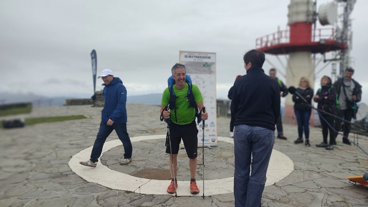 5,4,3,2,1….vámonos!! Empiezo a correr y me siento cómodo, en mi ritmo y me mantengo en el grupo de cabeza. Nada más llegar a la cima Íñigo me da el rotulador para firmar y soy tercero a pocos segundos de los dos primeros. No hay tiempo que perder, me dirijo al despegue para hacer un planeo, las condiciones no son buenas y las nubes están bajas.