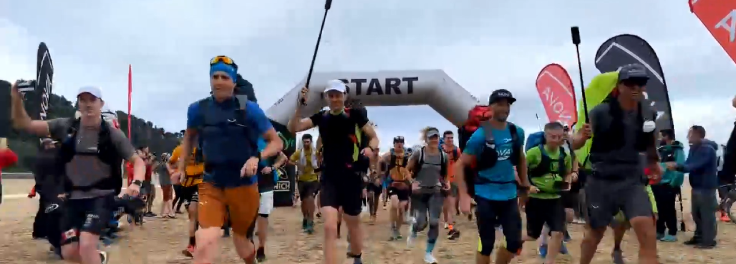 Por nuestra parte, estamos listos, todo parece estar bien. Aprovecho esta espera para preparar el almuerzo, en el menú, wraps compuestos por queso fresco, pepino, manzana, ensalada y salmón ahumado. Pasan los últimos minutos, empieza la cuenta atrás de los últimos segundos y se lanza la salida en la euforia general, todos los atletas parten a paso de carrera, y queda para siete días de aventuras y 605 km en línea recta. Pero empecemos poco a poco, primera etapa, los 25km y sus 800m de d+ para llegar al primer punto de giro.