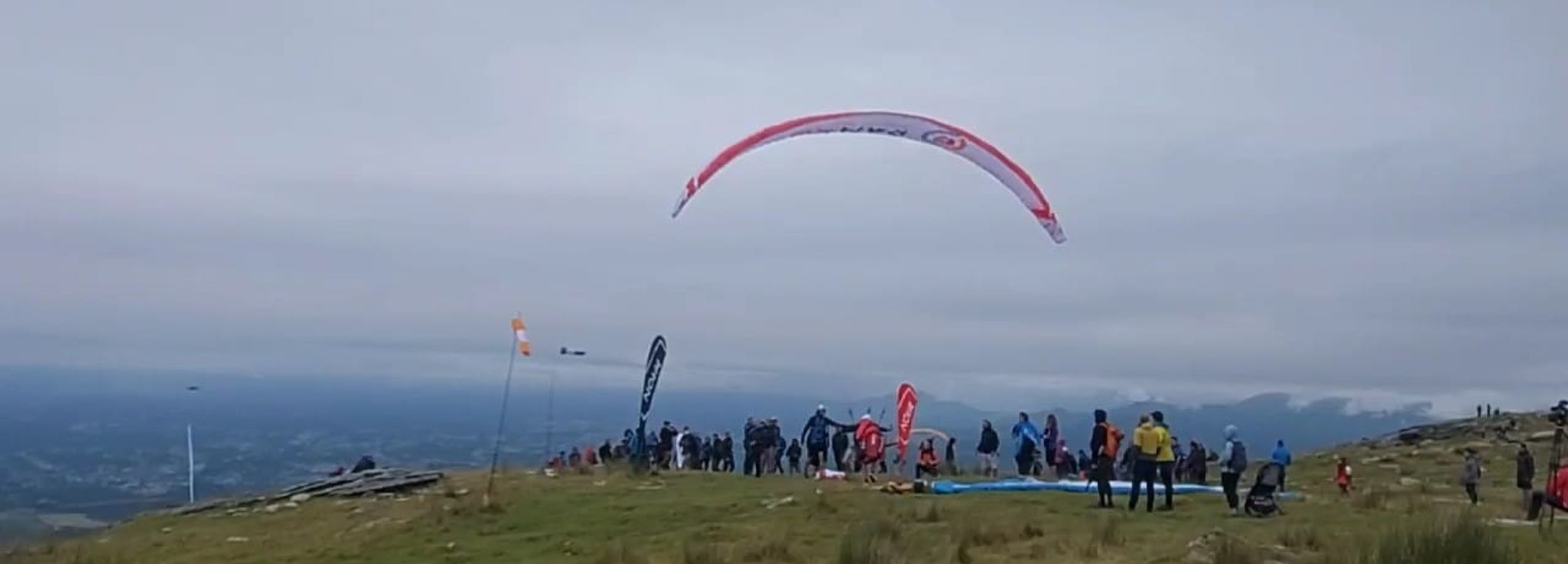 After reaching the top, I started my Nova Xenon and the goal was to fly as possible without hardly any thermals. Nevertheless at least it didn’t rain too much, so the sky was full of clouds and I went for landing after flying down. Again hiking up the next mountain where I managed to soar a bit and gained 70 to 80m hight – yes exactly, that was the most altitude that was possible to gain, but super important, because of that I could stay even higher than most of the other pilots and didn’t have to walk up again 250hm like the others. I just put my glider into a rosette and ran the last few meters to the top of the mountain. That allowed me to overtake the group in front of me! What a relief!