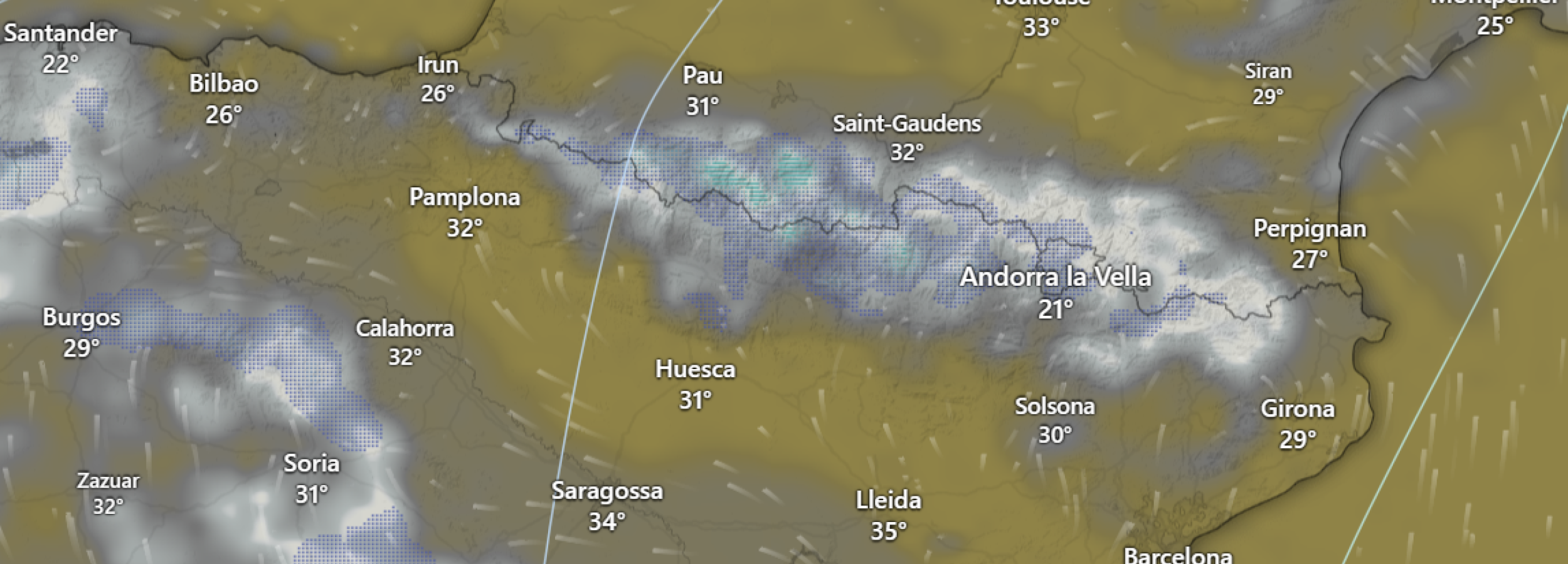 Also in the Spanish Pyrenees, some clouds will move through the sky during the early morning and forenoon.