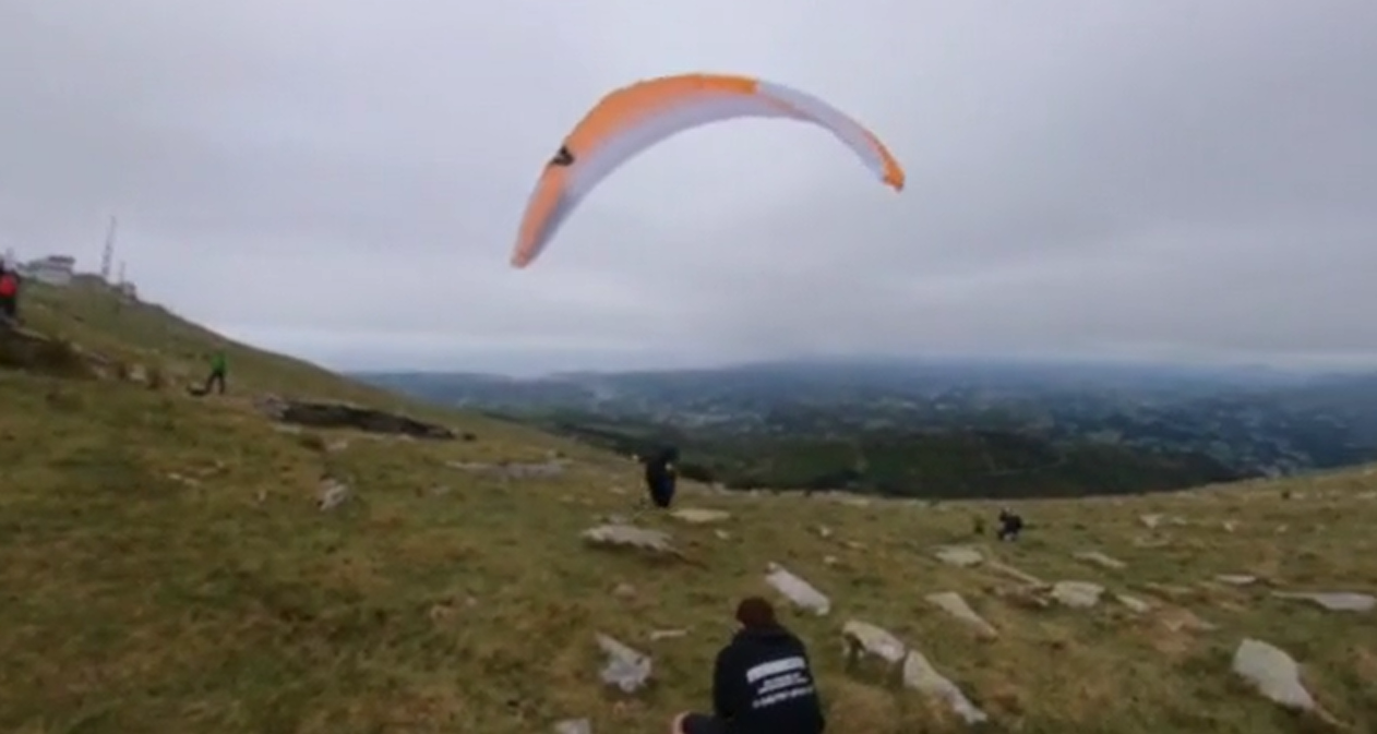 Xevi Bonet set off this morning at a trot, together with the group, from the start on the beach at Hondarribia. After a brief glide from the first turnpoint at the top of Larrún, he decided to take a route on foot to the north following the road. But seeing that the day allowed him to continue flying, he recalculated to follow a line of short climbs and glides further south, which made him position himself at the head of the group in this area of the route.