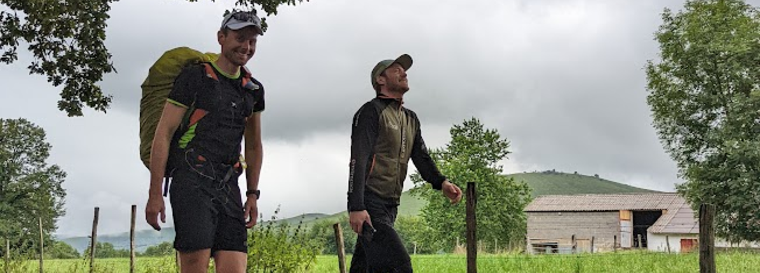So now I had to keep the pace up on the ground for another 15 kms with the rain chasing behind. The goal was to fly one more time before the rain came. But when arriving at the next summit we had low clouds, rain, and winds from the back. We had to walk back down. No good for my knee, and no good for morale. The conditions down the trail became so bad, with slippery mud and heavy rain, that me and my supporter just had to laugh about the situation.